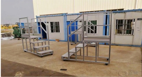 圖一移動(dòng)踏步平臺(tái)用的是4060鋁型材和6060鋁型材混合而用,這是一家機(jī)械廠用的移動(dòng)踏步平臺(tái),放便給大型自動(dòng)化加工設(shè)備做檢修維護(hù)用的,它底部還安裝了絲桿腳輪方便隨處移動(dòng),為操作人員帶來(lái)了很大方便。 圖二移動(dòng)踏步平臺(tái)它的作用和圖一是一樣的,只是它屬于固定平臺(tái),使用在一些大型通氣管道旁,像車(chē)間使用的自動(dòng)化設(shè)備每天在運(yùn)作,它每天是要做檢修維護(hù)工作,所以車(chē)間就用固定式登高踏臺(tái)。